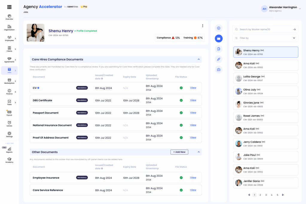 Centralised employee profiles with categorised storage for all documentation and training records.