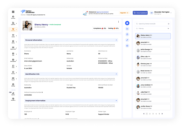 Centralised employee profiles with categorised storage for all documentation and training records.