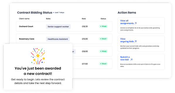 Facilitated award confirmation, digital contracts, agreed rate locking, and SLAs.